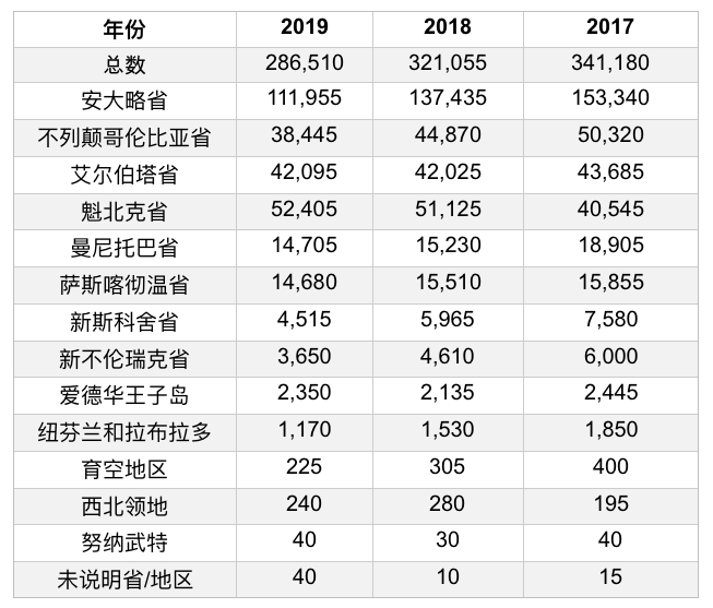 截至目前,安省仍是新移民的主要目的地,2019年占全國份額的45%,較2018年增加了兩個百分點。這也許和魁省政府决定在 2019年减少20%的移民人数有關。也因此,魁省在2019年下降兩位排名,成為新移民到加拿大的第四大目的地。不列顛哥倫比亞省排名第二,迎來了50,000名移民,阿爾伯塔省排名第三。曼尼托巴省移民人數激增,去年吸纳了近19,000名移民,比2018年的移民人數增加了24%。