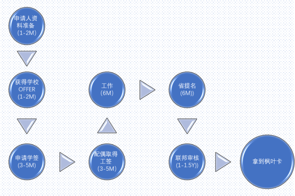 | 1. 在留學期間適應加拿大的人文環境,留學和生活費用相對比其他省分更低廉 2. 取得加拿大的文憑後對今後的就業會有幫助 3. 辦理移民的過程中,小孩可以享受免費義務教育 | 1. 項目周期相對比較長,機會成本高 2. 配偶橋梁模式不太適合孩子較小的家庭 |