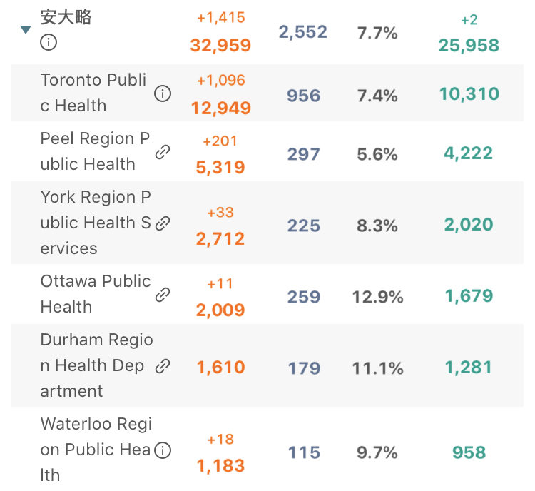 (由於GTA大多倫多地區(包括多倫多、萬錦、世密西沙加、世嘉寶等)疫情仍未得到妥善控制,因此該列表中不含GTA大多倫多地區)