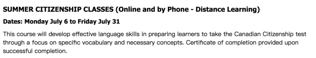 針對這種需求,York Region教育局推出了成人暑期語言線上課程(包括電話授課及網課),課程內容有: