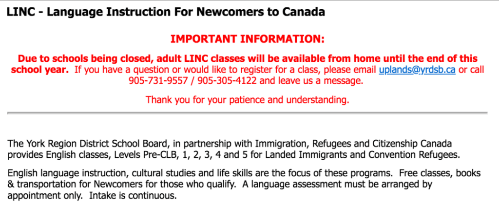 - 加拿大新移民英語課程 Language Instruction for Newcomers to Canada