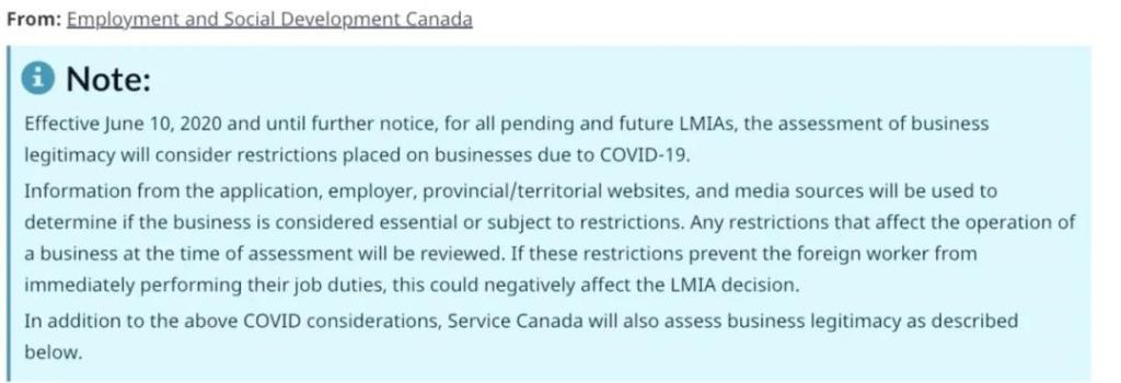 近期,加拿大服務局(Service Canada)對LMIA勞動市場意見評估批文政策做出了更新:針對所有待處理及待申請的LMIA個案,政府將根據Covid-19疫情期間頒佈的限制令來對雇主的經商資質進行評估。