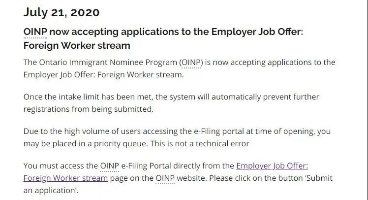 功夫不負有心人,今早9點50左右,安省移民廳(OINP)終於官宣了雇主擔保:海外勞工類(Employer Job Offer: Foreign Worker stream )開放的消息。