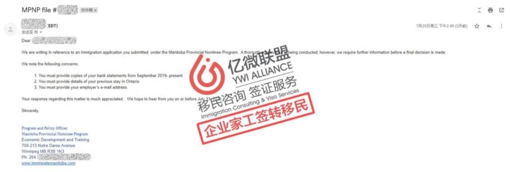 億微的一位元客戶7月16日被抽中並於7月21日提交了省提名資料,時隔僅僅一周,客戶29日便收到了要求提交補料的郵件,可謂神速!