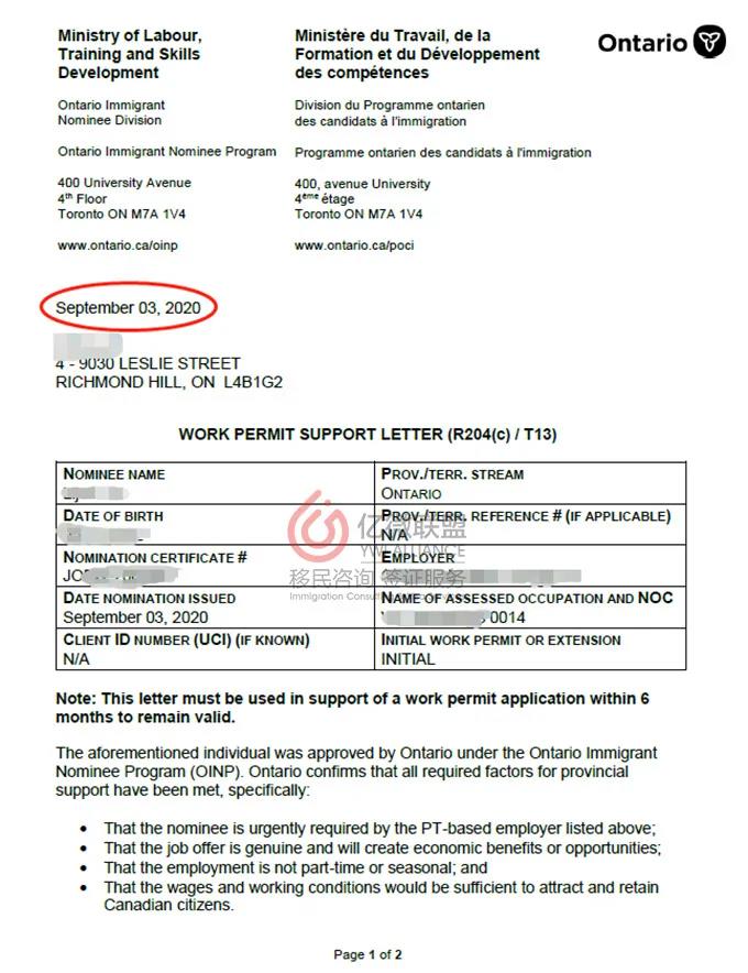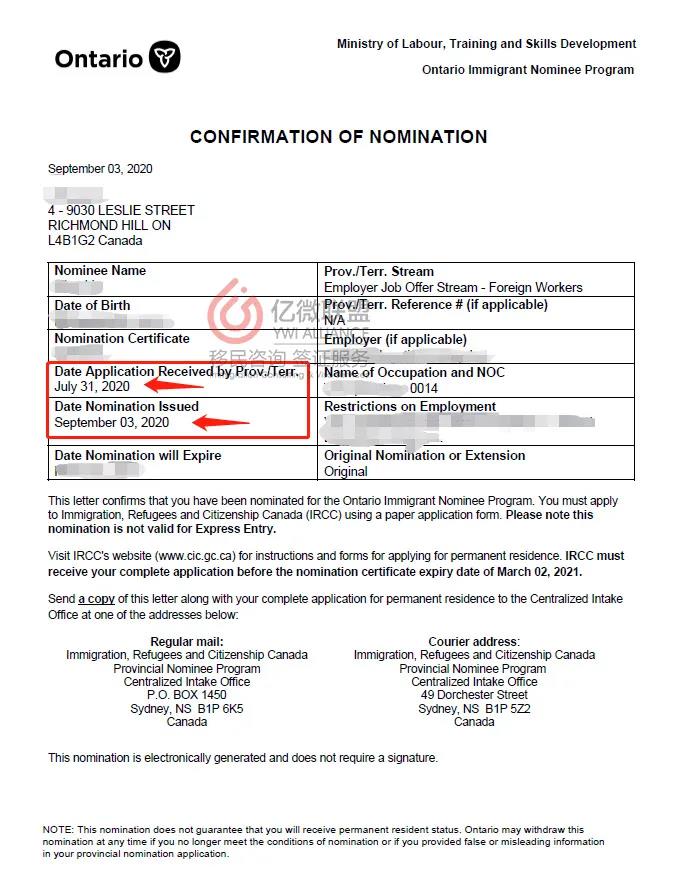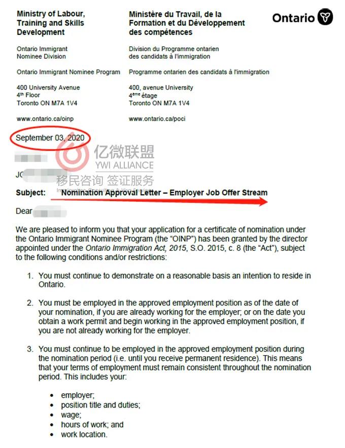 捷報捷報,安省雇主擔保海外勞工類別,億微聯盟7月21日搶名額,7月31日遞交客戶申請,9月3日獲批省提名證書!從遞交到獲批,僅44天!