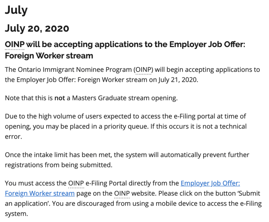 7月21日,安省雇主擔保:海外勞工類(Foreign Worker stream)開放邀請。