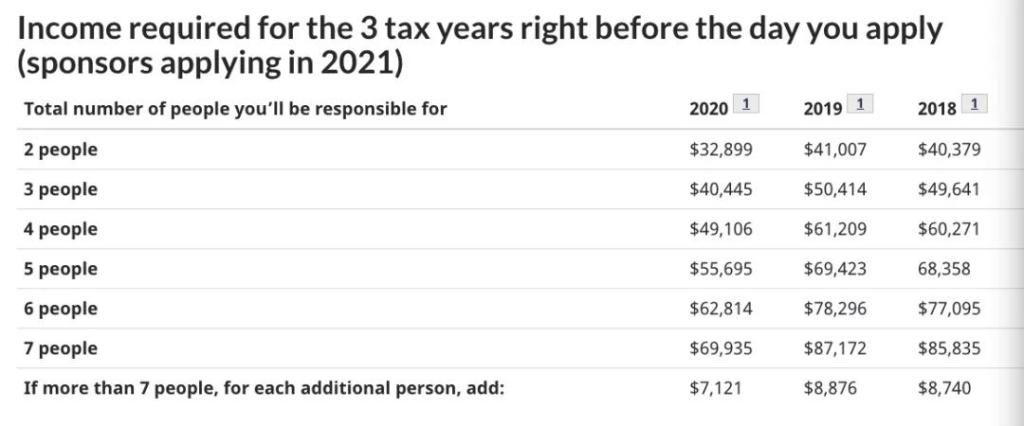 2020年父母團聚移民對擔保人的收入要求如何?(更新)