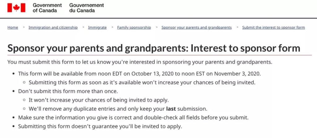 不是。2020年父母祖父母團聚移民申請以“先填表,後抽籤”的方式進行擔保人申請人資格篩選。Interest to Sponsor系統於加東時間2020年10月13日至2020年11月3日,為期三周,正式開始接受擔保人填寫意願表達。大家有充分時間可以填寫。