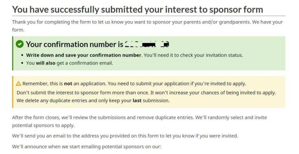 按照過往的經驗, 如果您的意願表達被抽中,您將會收到一封移民局的通知信。也可以通過輸入意願表達確認號來網上核對查詢。