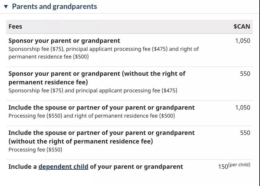 按照目前移民局公佈的收費標準,$75的擔保人資格申請費+$475的主申請人申請費+$500登陸費=$1050加元。兩人共2100加元。