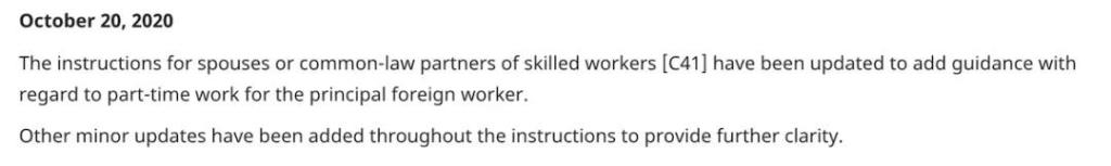 2020年10月20日,加拿大移民局IRCC發佈一則公告,對於原有的持開放式工簽的配偶所能申請的配偶工簽政策作出調整。