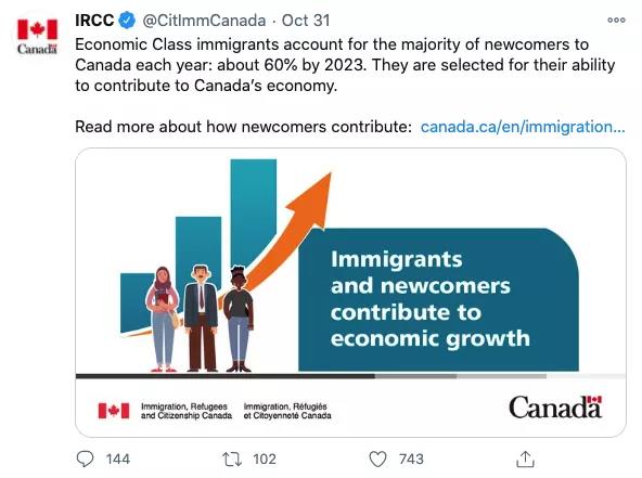 移民局及移民部長多次強調,移民為加拿大帶來了巨大的經濟利益,並有助於加拿大從新冠疫情的危機中恢復。