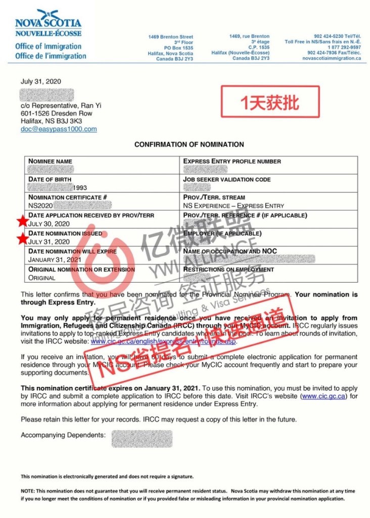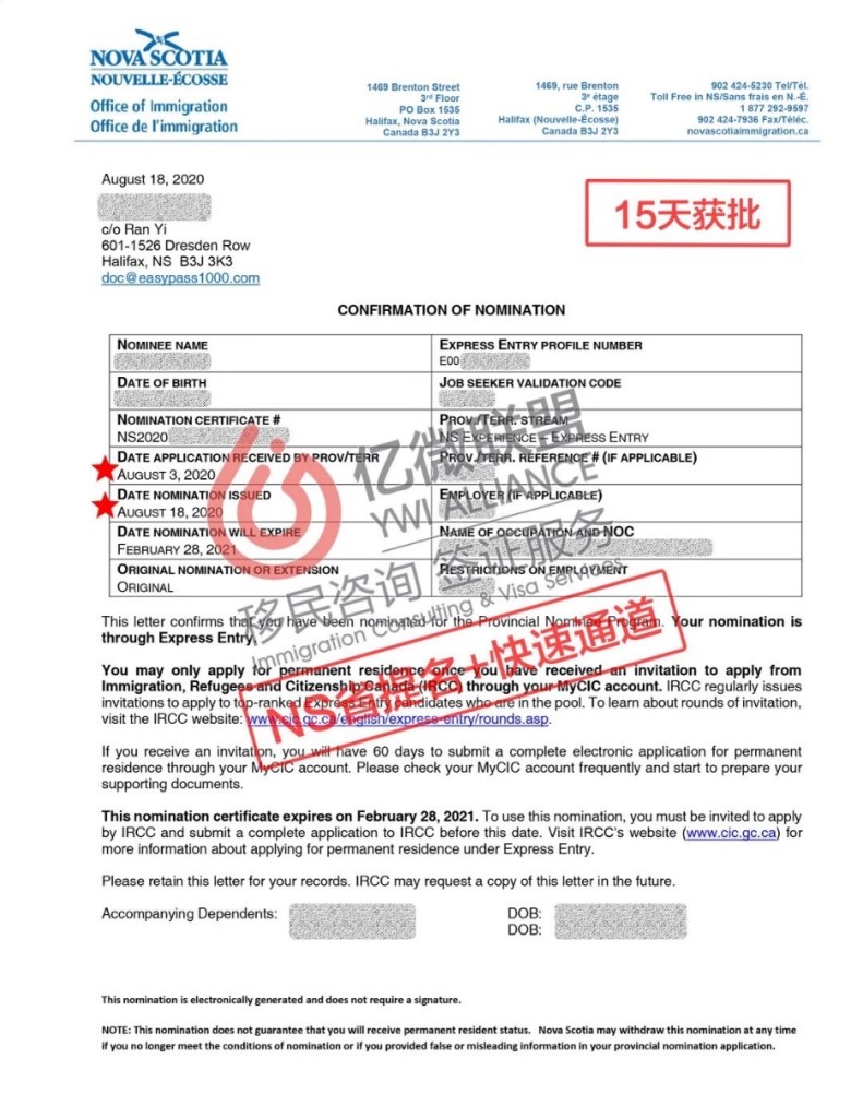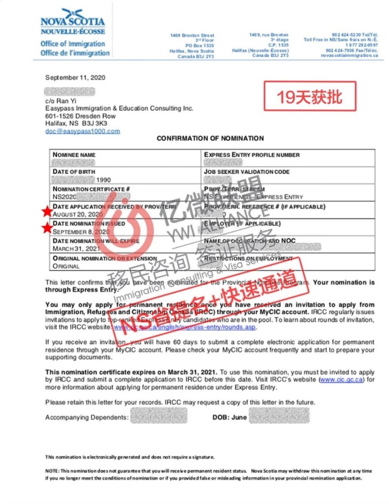 NS省提名官方審理時間:3個月 + 聯邦快速通道官方審理時間:6個月