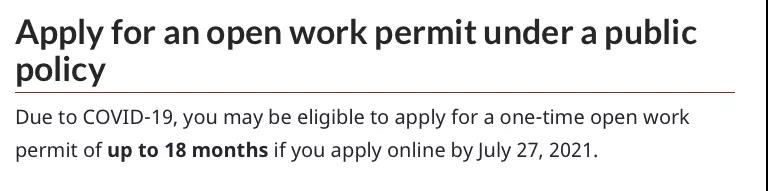 畢業工簽已過期或即將到期的留學生,只要在2021年7月27日前線上遞交申請表,就有機會額外獲得長達18個月的開放式工簽!
