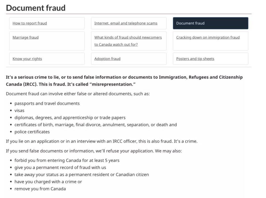 在申請過程中向加拿大移民官撒謊,或向移民局提供虛假資訊,都會被稱為虛假陳述(misrepresentation)。