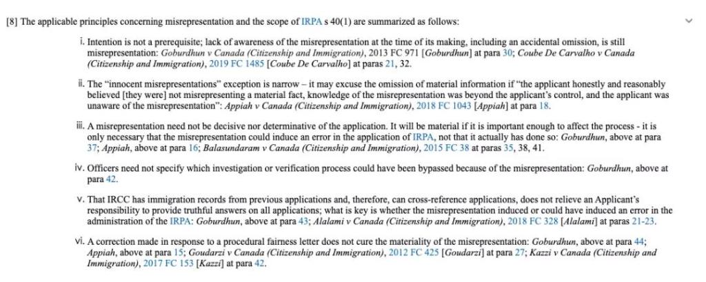 我們來看看聯邦法院近期的一項虛假陳述的裁決,以理解加拿大移民局在處理虛假陳述案件時的嚴苛程度。