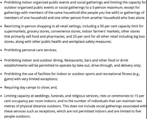 再次封城後,全省將實施以下七項衛生措施,以確保加拿大普通民眾的安全: