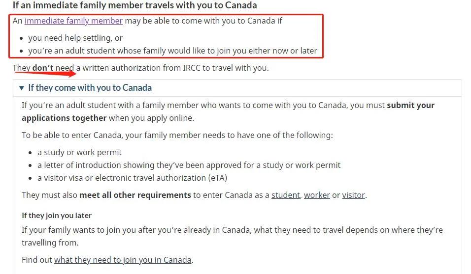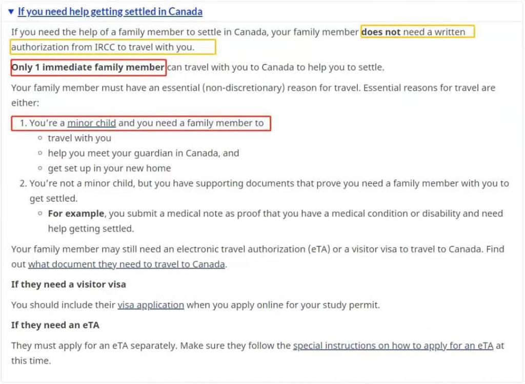 需要注意的是,該政策只允許一名直系親人陪同,且親人須持有效加拿大旅遊簽證(visitor visa) 或加拿大eTA電子旅行授權electronic travel authorization。