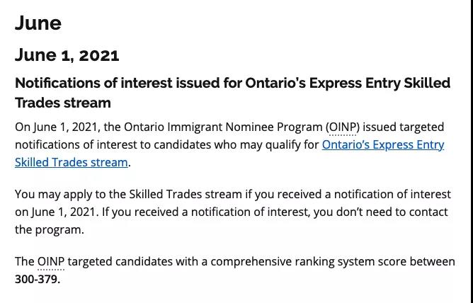 2021年6月1日,安省移民廳(OINP)對快速通道:技工類移民專案(Express Entry Skilled Trades Stream)的候選人發出了一輪邀請。