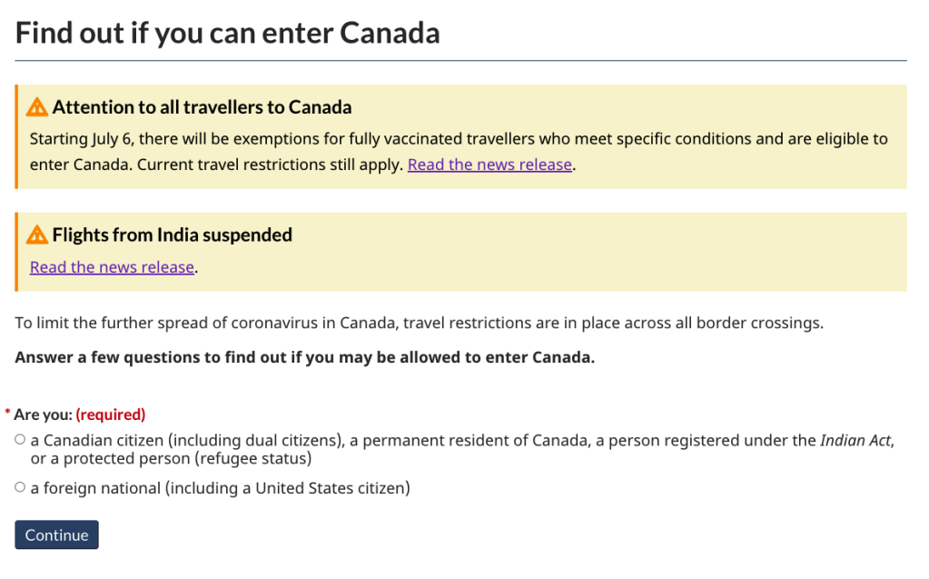 加拿大移民局官網推出了自測工具,旅客出發前可通過以下連結確認自己當前能否入境加拿大。
