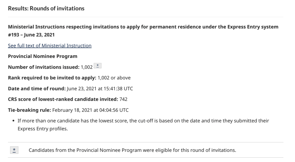 官網連結:https://www.canada.ca/en/immigration-refugees-citizenship/corporate/mandate/policies-operational-instructions-agreements/ministerial-instructions/express-entry-rounds/invitations-193.html
