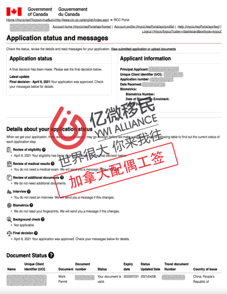 歷時僅九天!恭喜億微客戶W小姐順利通過配偶工簽申請!