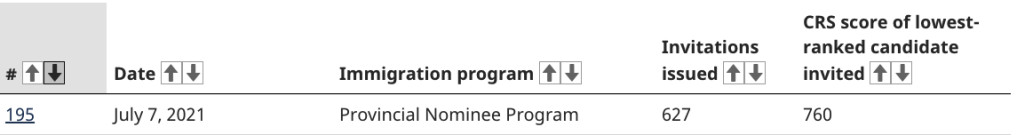 7月7日,加拿大聯邦快速通道向有省提名的快速通道候選人發出了627份指定項目邀請,抽選分760分。