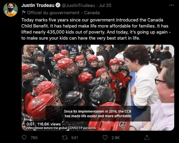 加拿大東部時間7月20日(本周二),加拿大總理Justin Trudeau 賈斯汀•特鲁多在推特上宣布: