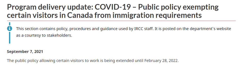 如曾經持有加拿大工簽,但不得已轉換成訪客身分,允許申請臨時工作許可。