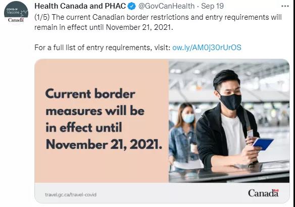 現有的加拿大邊境限制及入境要求,將持續生效至2021年11月21日。
