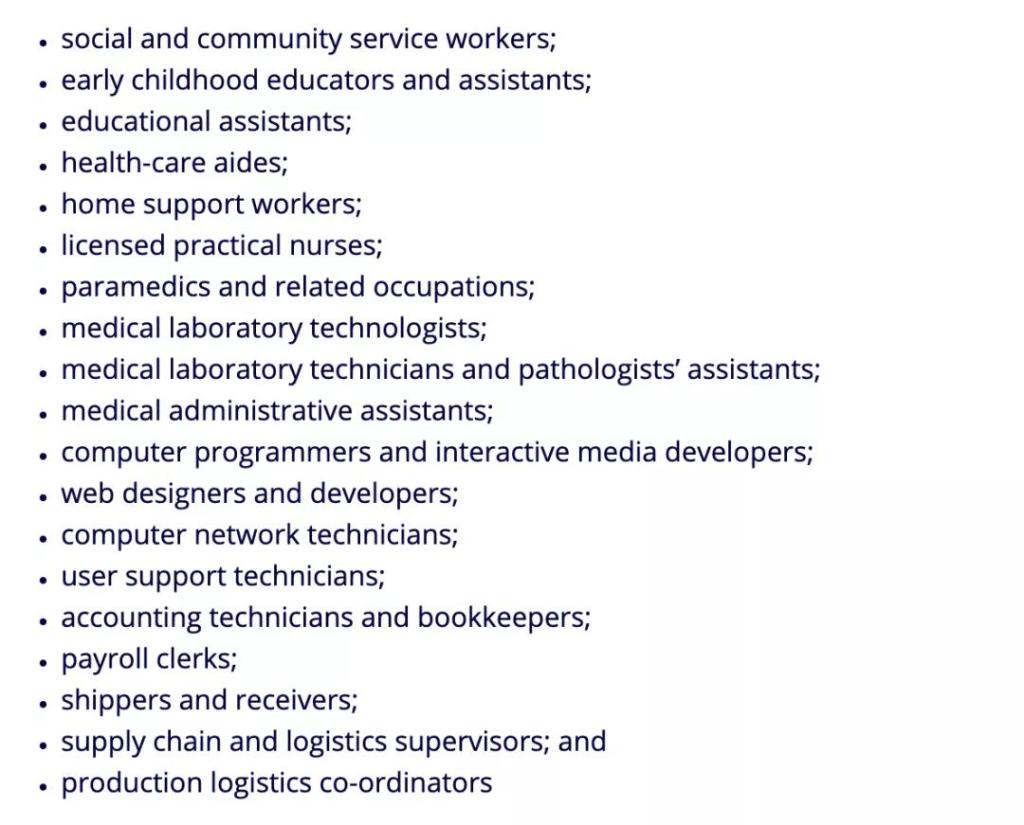 並在下列19个指定職業之一中學習的留學生將能夠申請省提名項目 (PNP)。省提名項目(PNP)幫助加拿大各省和地區確認能夠滿足當地經濟需求的移民候選人。 19個指定職業為: