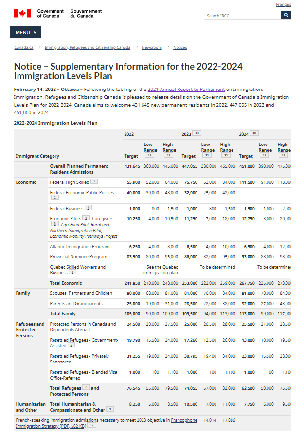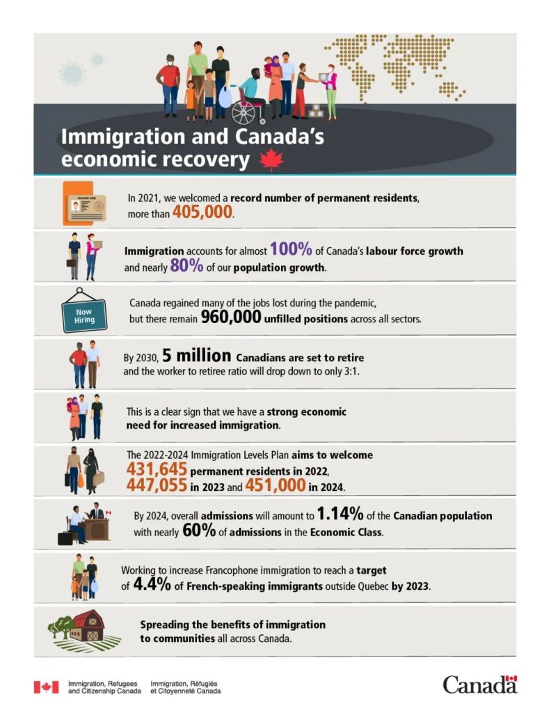 2月14日,加拿大移民局官宣了2022-2024年最新三年移民計畫!