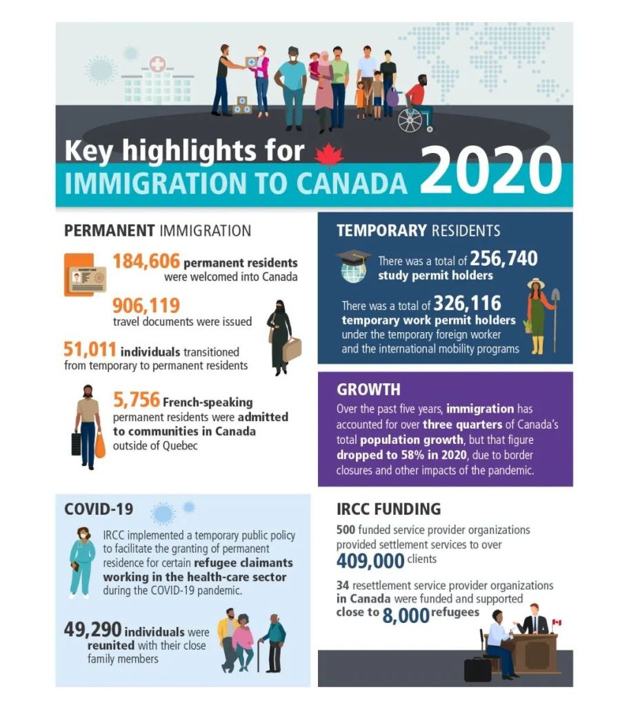 同2022-2024年移民水準計畫共同發佈的2021移民年度報告,總結了2020年加拿大移民的整體情況。