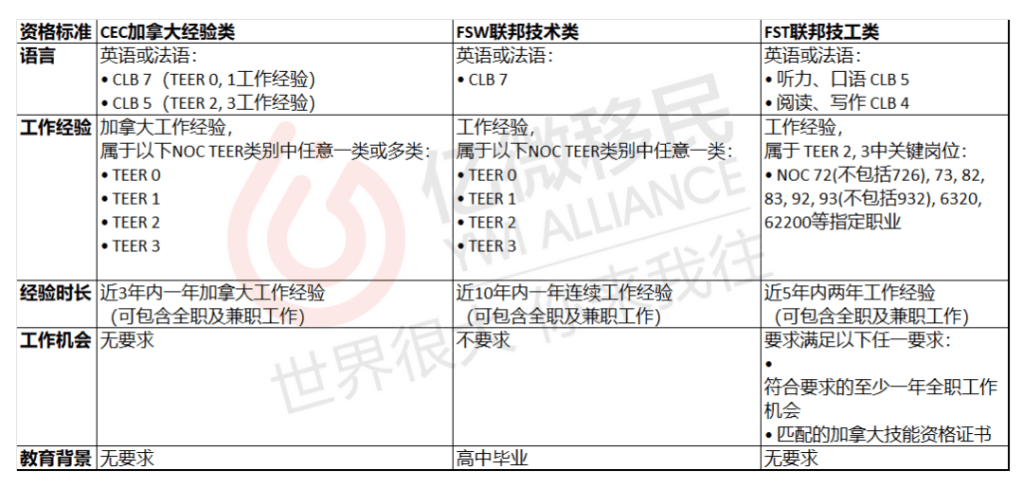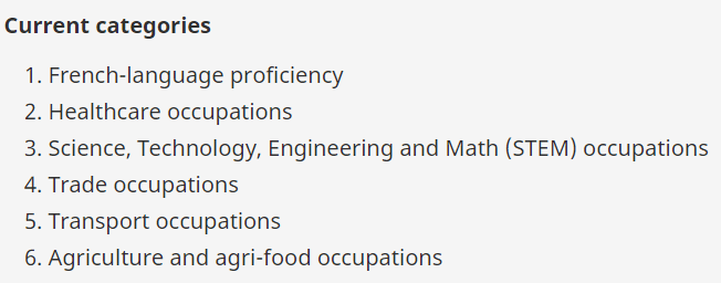 - 各省提名,為法語能力提供加分,例如NS省,曼省等