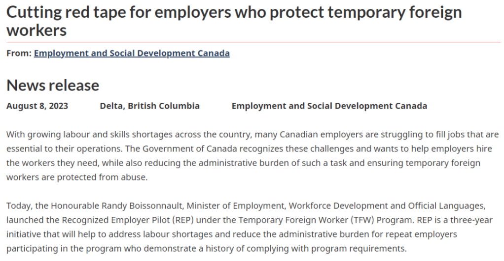 2023年5月31日,移民局官宣EE定向邀請政策,2023年EE定向抽選對象是基於2022至2031年加拿大勞動力市場的短缺預測,預測內容仍有效,並且移民局在2022年冬天和2023年夏天收集了公眾意見。